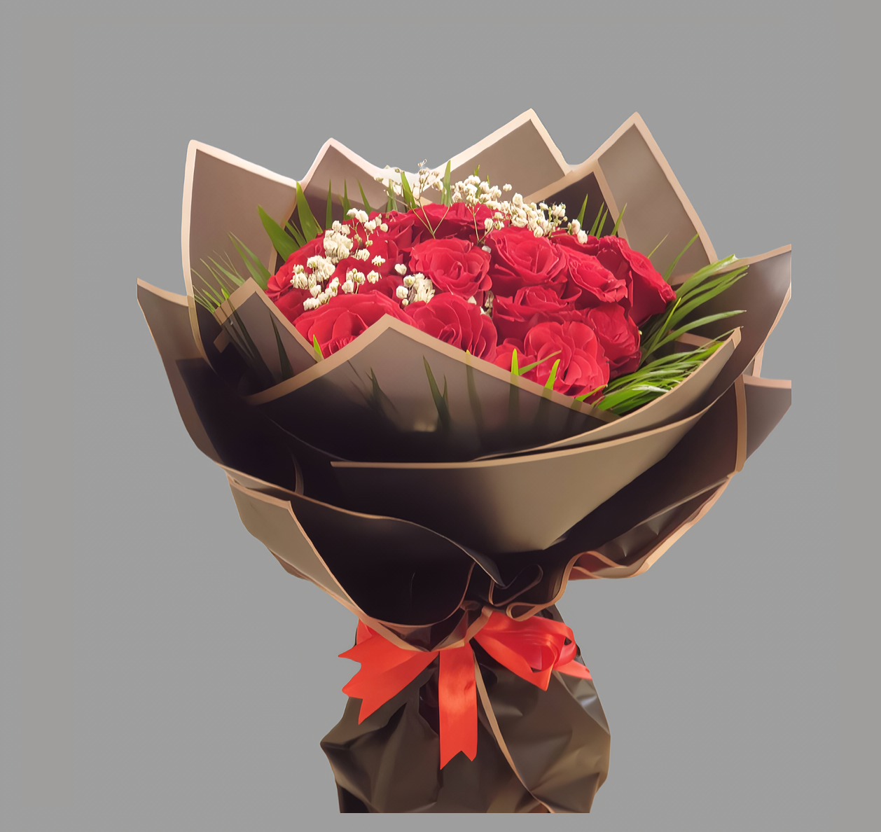 | Description Show the intensity of your love with these lovely red roses to your partner. This bunch of beautiful red roses is exquisite enough to liven up your partner’s mood. Product Details: 25 Red Roses Fillers- Gypsophila – Palm Leaves Black Wrapping Bouquet Height – 50-60 cm |