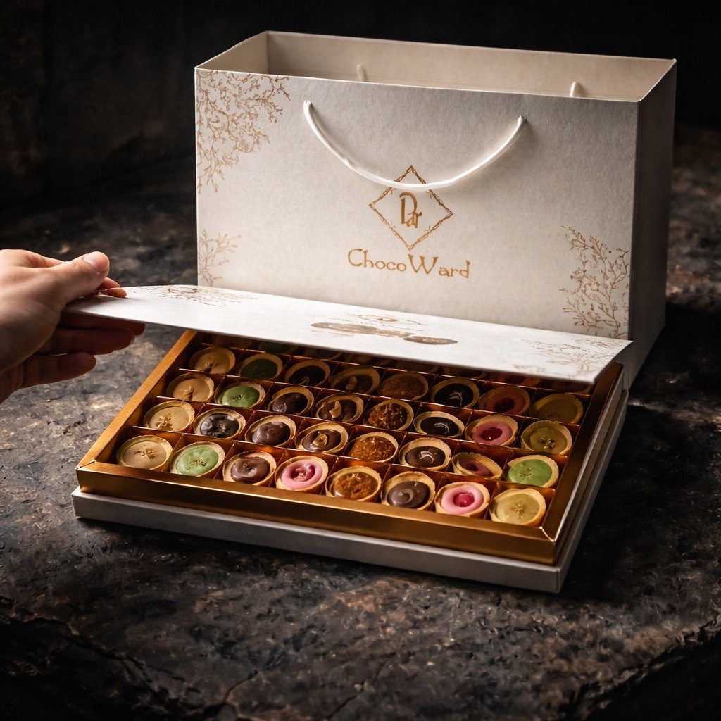 A delicious selection of cup biscuits in assorted flavors including pistachio, strawberry, hazelnut, and more, beautifully arranged in an elegant box.